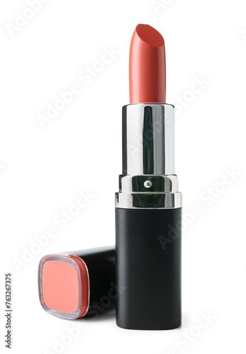 © Pixel-Shot, Obraz premium Beautiful beige lipstick on white background