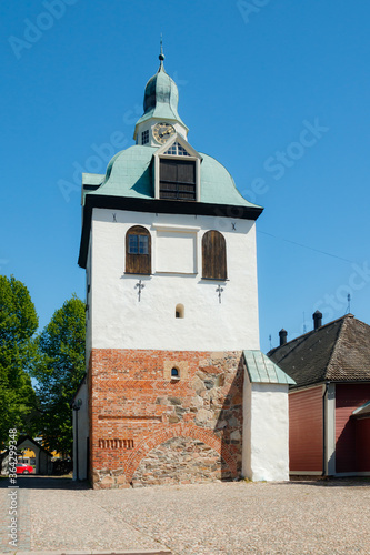 Fototapeta premium Beautiful bell tower of Porvoo Cathedral in old town of Porvoo