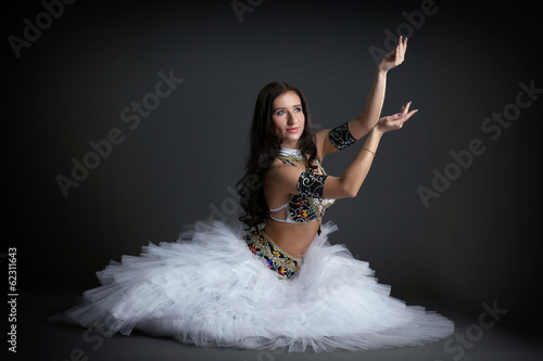 © Wisky, Naklejka premium Beautiful belly dancer posing in studio