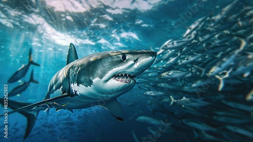 © Abu, Fototapeta premium Beautiful Big white shark in big aquarium with ocean water