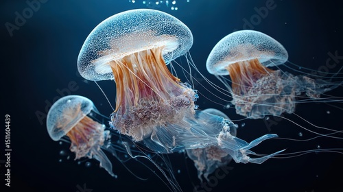 Fototapeta premium Beautiful Bioluminescent Jellyfish in Deep Ocean