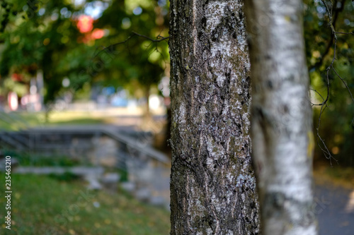 Fototapeta premium beautiful birch tree trunks, branches and leaves in natural environment