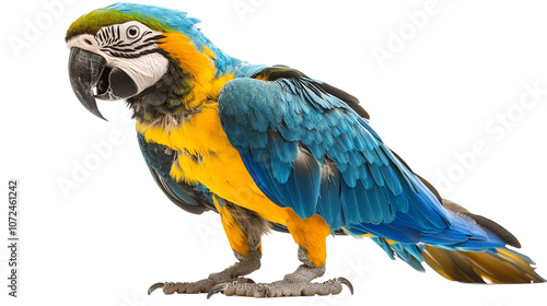 Fototapeta premium Beautiful bird blue and gold macaw parrot isolated on transparent background