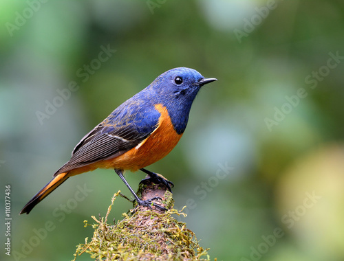 Fototapeta premium Beautiful bird, Blue-fronted redstart (Phoenicurus frontalis) th