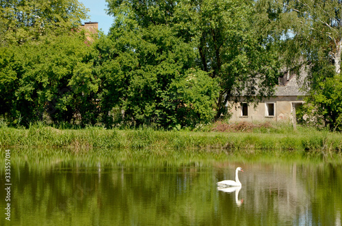 Fototapeta premium beautiful bird white swan on the pond