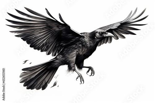 Fototapeta premium beautiful black and white drawing of black crow. isolated in white. generative ai.