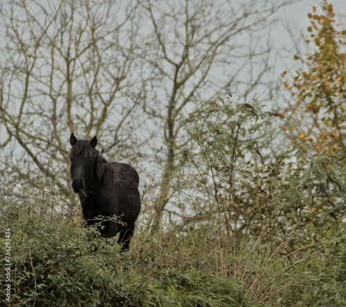 © isidro, Fototapeta premium beautiful black horse grazing freely in the mountain