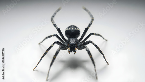 © Qrryferry, Fototapeta premium Beautiful black spider sits on a web, plain white background.