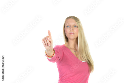 Fototapeta premium beautiful blond woman in front of visual touch screen