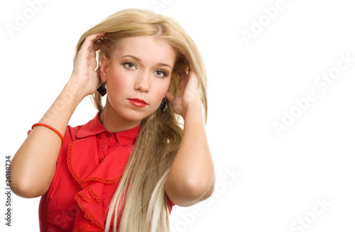 Fototapeta premium beautiful blonde woman portrait on white background