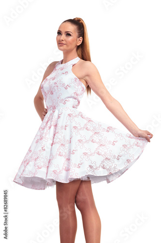 Fototapeta premium Beautiful blonde woman presenting her dress.