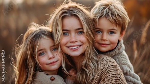 © PeopleWorker, Obraz premium Beautiful blonde woman smile happy with his children