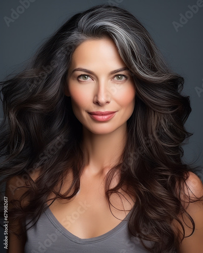 © PaulShlykov, Fototapeta premium Beautiful blonde woman with beautiful curly hairstyle posing in the studio
