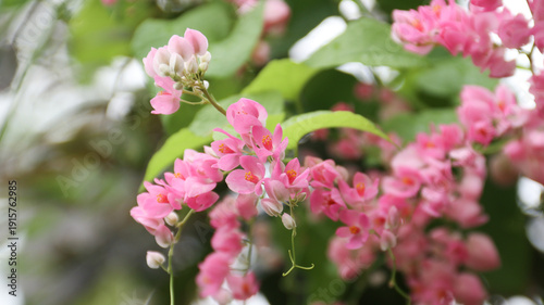 Fototapeta premium Beautiful bloom Antigonon pink flower with nature blurred background