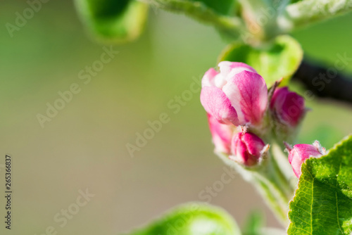Fototapeta premium Beautiful blooming apple tree with pink flowers in spring close