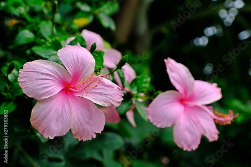 Fototapeta premium Beautiful blooming Dainty Pink Hibiscus (Hibiscus rosa-sinensis) flowers.