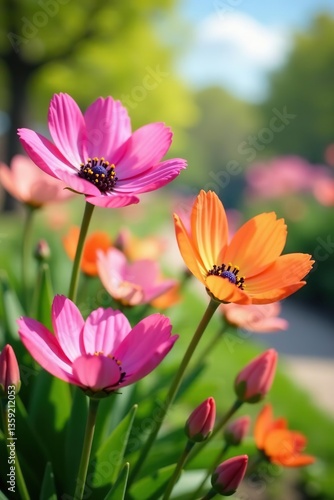 © thanaporn, Fototapeta premium Beautiful blooming flowers in a sunny spring garden, sunlight, environment