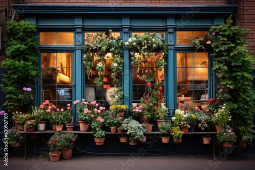 Fototapeta premium Beautiful blooming flowers in window boxes.