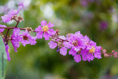 Fototapeta premium Beautiful blooming Lagerstroemia, or Crepe Myrtle, or Bunga Bungur, with...