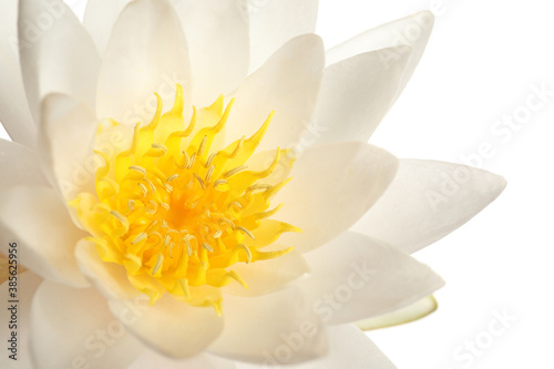 Fototapeta premium Beautiful blooming lotus flower on white background, closeup