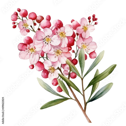 Fototapeta premium Beautiful Blooming Pastel Pink and Red Waxflower Flower Botanical Watercolor Painting Illustration