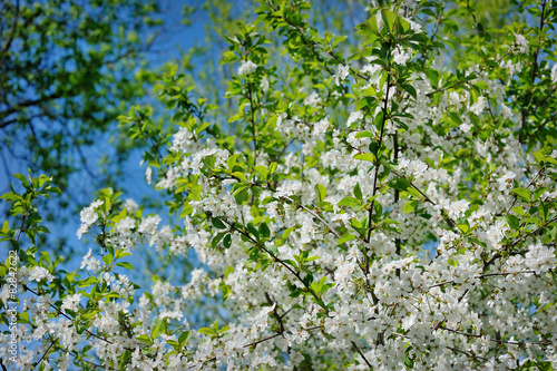 Obraz premium Beautiful blooming spring garden on a background of blue sky