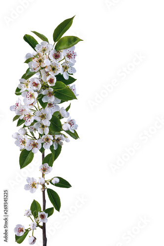 Fototapeta premium Beautiful blooming twig of cherry isolated against white background