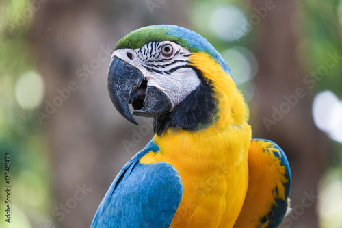 Naklejka premium Beautiful Blue and gold macaw bird - Tropical parrot