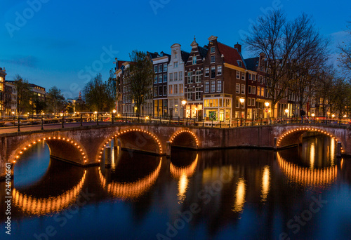 © ali, Fototapeta premium Beautiful blue hour over Amsterdam canal