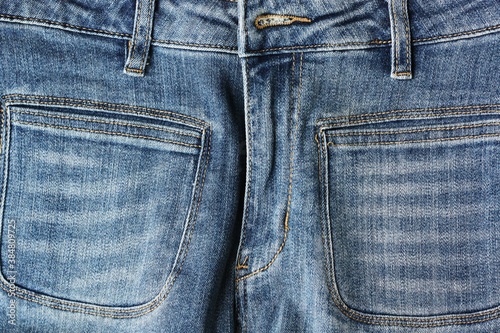 © Angelic, Fototapeta premium Beautiful blue jeans background close up view