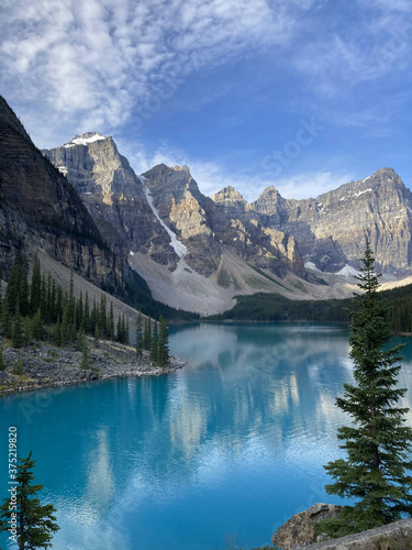 © Vicky, Fototapeta premium Beautiful blue lake with rocky mountains and trees