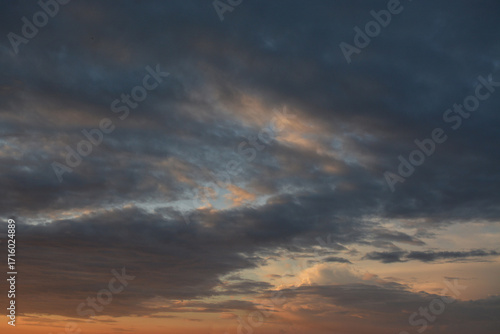 © Olena, Naklejka premium Beautiful blue-orange sky in the late evening. Background