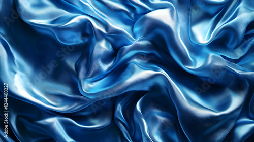 Fototapeta premium Beautiful blue satin waves gently flowing in the light, capturing a serene...