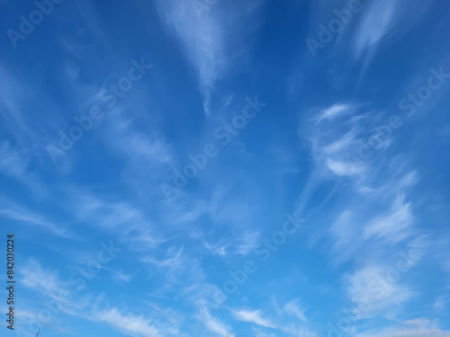 Fototapeta premium Beautiful blue sky and feathery white clouds nice bright day
