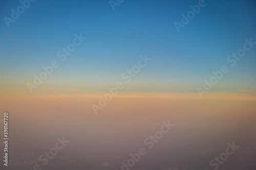 Fototapeta premium Beautiful blue sky before sunset with clouds shoot on airplane