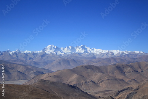 Naklejka premium Beautiful Blue Sky Mountain Rock Sea in Tibet