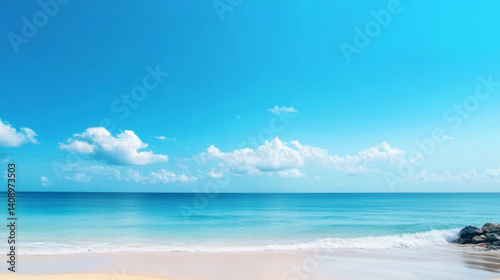 Fototapeta premium Beautiful Blue Sky, White Clouds, and Ocean Wallpaper Background