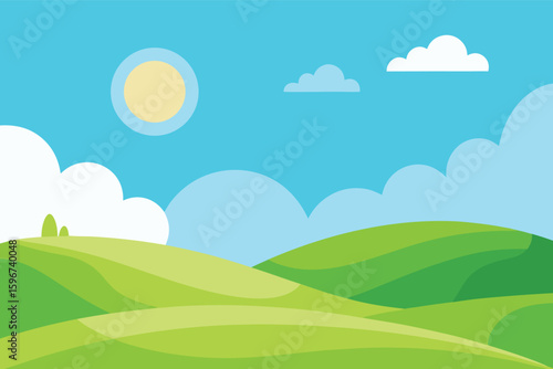 © SADHON, Fototapeta premium Beautiful blue sky with cloud and green field