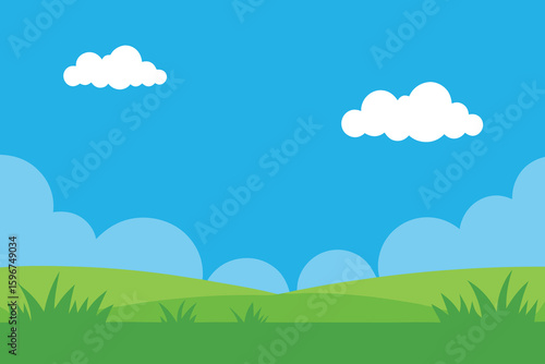 Fototapeta premium Beautiful blue sky with cloud and green field