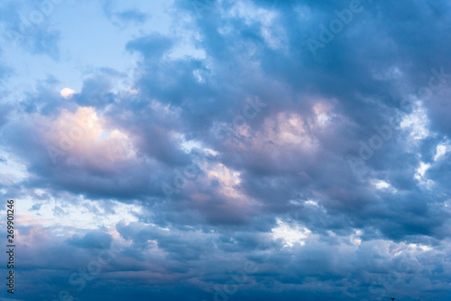 © lusyaya, Obraz premium Beautiful Blue Sky with Dramatic Clouds. Nature Spectacles