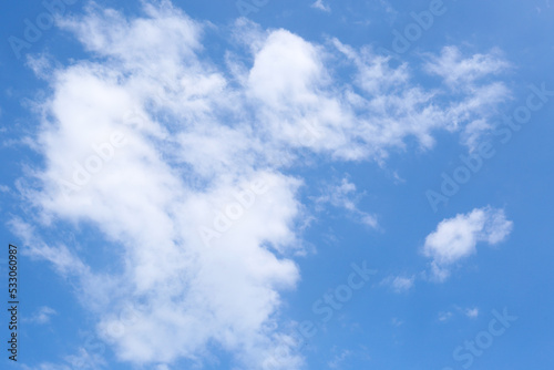 Naklejka premium Beautiful blue sky with fluffy clouds, low angle view