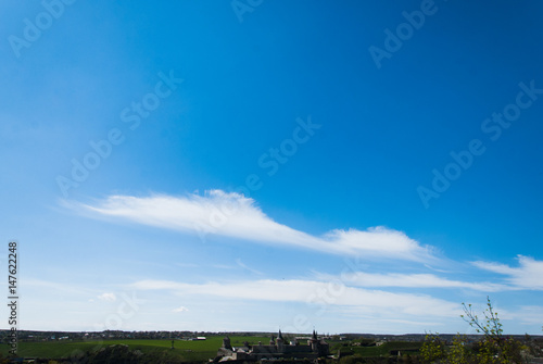Obraz premium Beautiful blue sky with silhouette of Ukrainian castle