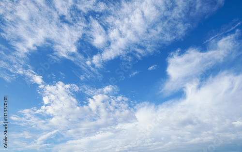 Fototapeta premium beautiful blue sky with soft white clouds for abstract background