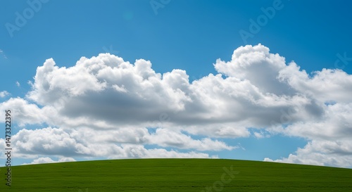 Fototapeta premium Beautiful Blue Sky with White Clouds Above Green Rolling Hill Landscape,...