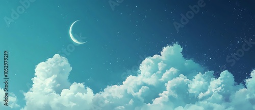 © Chayon Creative, Fototapeta premium Beautiful blue sky with white clouds and a moon banner.