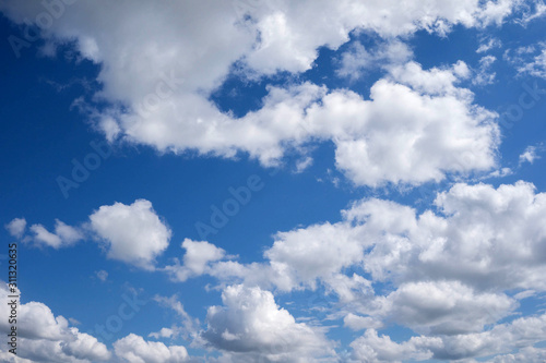 Fototapeta premium Beautiful blue sky with white fluffy clouds. Background.