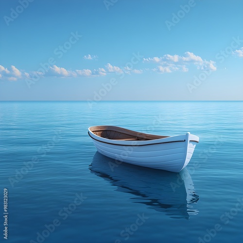 © Biplob, Naklejka premium Beautiful Boat Drifting Near the Coastal Shoreline of a Blue Sea photo