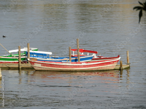 Naklejka premium beautiful boats colorful river water wood floating fun fishing