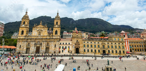 © pabloacruz, Fototapeta premium Beautiful Bolivar's Square in Bogota Colombia, drone view