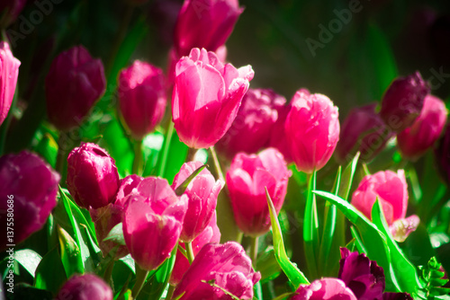 © PhatCha, Fototapeta premium Beautiful Botanical Garden with Blooming Pink Tulip Flowers in Springtime